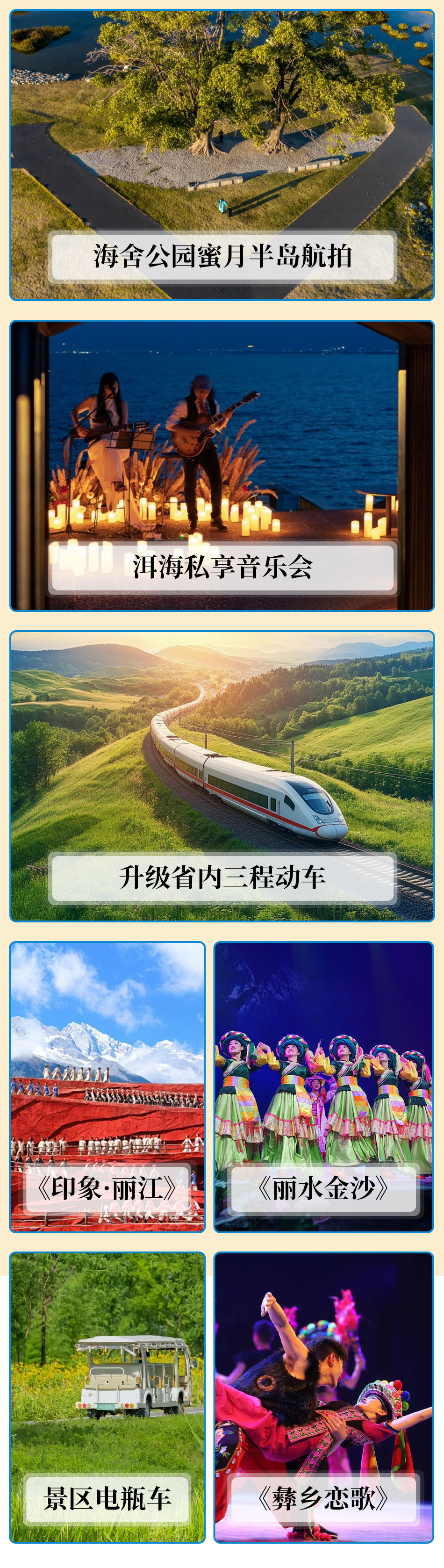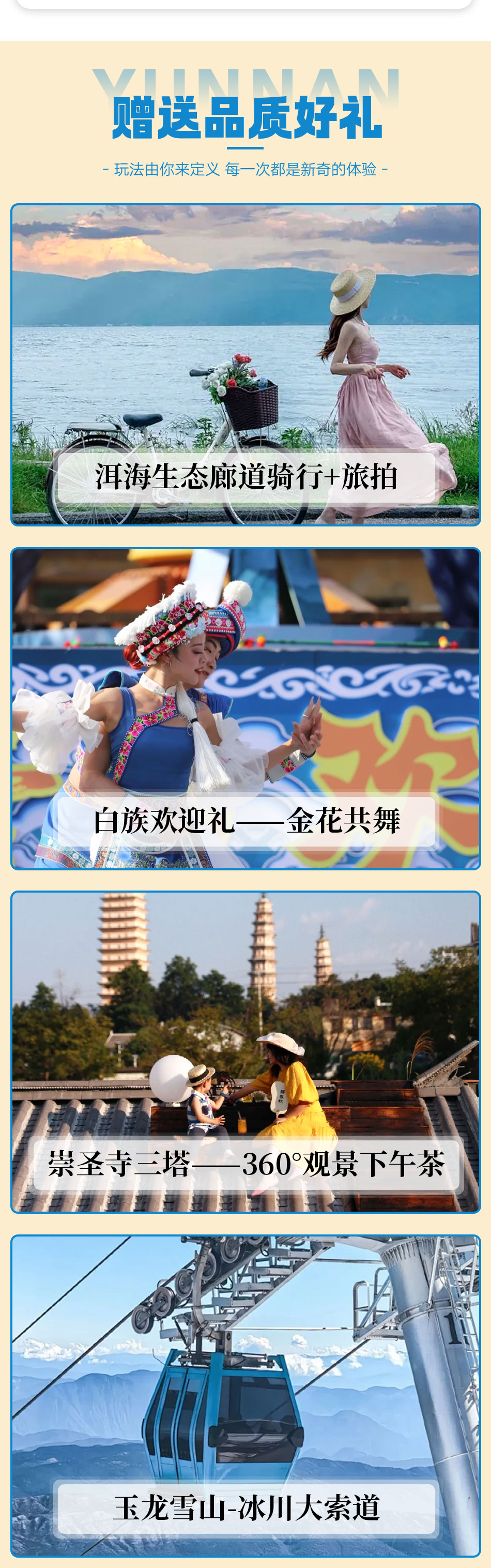 Seaside Inns | Twice to Jade Dragon Snow Mountain + Cycling by Erhai Lake + Chongsheng Temple Three Pagodas + Elegant Afternoon Tea + Pudacuo National Park + Dukezong Ancient Town | Impression Lijiang Show + Blue Moon Valley + Lijiang Ancient Town + Wild Elephant Valley + Tropical Rainforest Park
